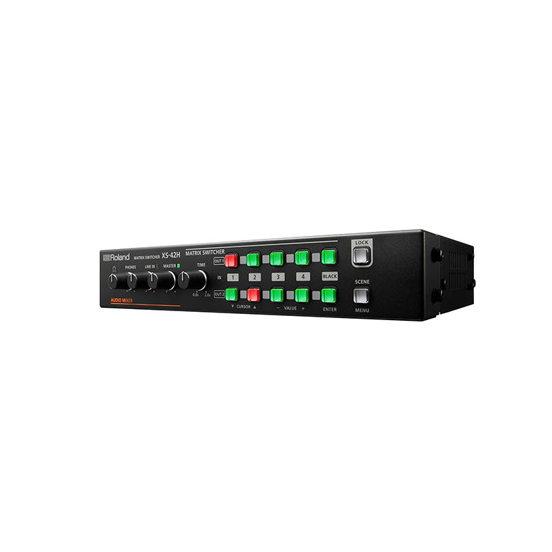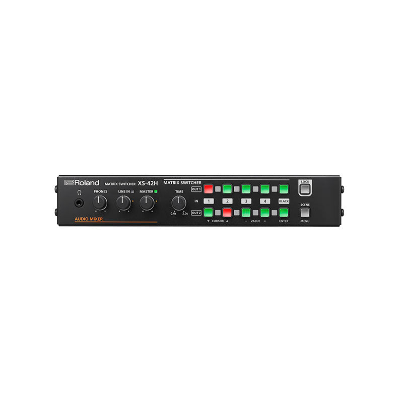 The Roland XS-42H is a versatile matrix switcher designed to enhance meeting efficiency and collaboration. This compact device allows seamless switching of up to four HDMI inputs to one or two displays, making it ideal for huddle spaces and small meeting rooms. The XS-42H features Auto Input Detection, which automatically switches to a newly connected device, ensuring smooth transitions between presenters. With its web browser control, users can manage the switcher from a tablet, phone, or PC, eliminating the need for remote controls and simplifying the setup process. The XS-42H also includes an audio delay effect and automatic audio switching, ensuring synchronized and high-quality sound. Its compact design and easy installation make it a cost-effective solution for creating professional AV environments without the need for extensive AV experience. The XS-42H is perfect for businesses looking to improve their meeting spaces with reliable and user-friendly technology.