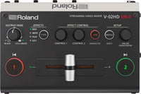 The Roland V-02HD MK II is a compact and affordable streaming video mixer designed to elevate your livestreams. This desktop device allows you to connect and switch two high-quality HDMI cameras and send them directly to your favorite streaming platform over USB-C. With its intuitive layout, large controls, and T-bar fader, the V-02HD MK II is incredibly simple to operate, even for those with no broadcasting experience. It supports high-quality streaming up to 1080p/60 FPS and integrates seamlessly with platforms like Facebook, YouTube, Twitch, and Zoom. The V-02HD MK II also offers advanced workflows with OBS Studio, StreamYard, and Restream. It features dedicated audio inputs, HDMI audio embedding, and a variety of video effects and transitions to enhance your live productions. The device includes Program Out and Preview Out for external HDMI devices, making it a versatile tool for any streaming setup.