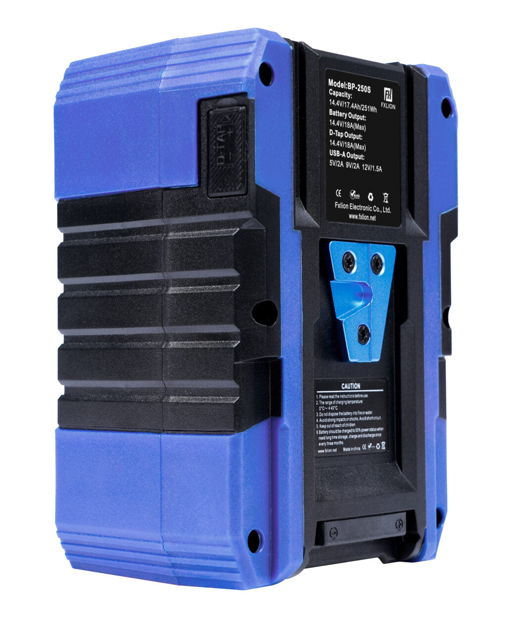 The FXLion BP-250S-II is a 250Wh V-Mount battery from the Cool Black Series, designed for professional video and broadcast applications. Delivering 14.8V at 16.8Ah, it features dual D-Tap outputs, a USB-A port, and a 2.1mm DC socket for powering cameras, lights, and accessories simultaneously. The battery supports charging via D-Tap or standard V-Mount plates and includes a 5-level LED indicator for real-time capacity monitoring. Internally and externally redesigned, it maintains the reliability of newer models while remaining the most affordable high-capacity option in the FXLion lineup. Built-in protection circuitry ensures safe operation under demanding conditions, making it a dependable choice for mobile production environments.