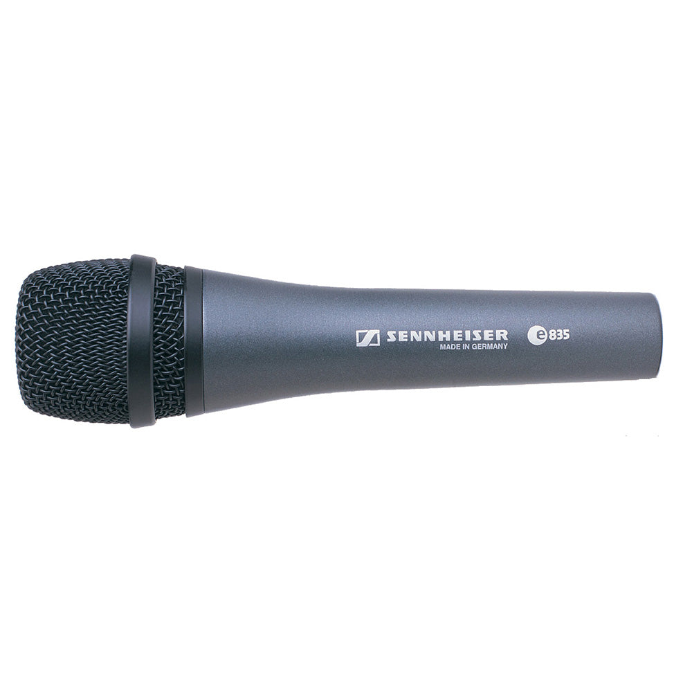 De Sennheiser e 835 is een cardioïde zangmicrofoon met een dynamische transducer en bevat een frequentiebereik van 40 tot 16.000 Hz en een gevoeligheid van 2,7 mV / Pa.